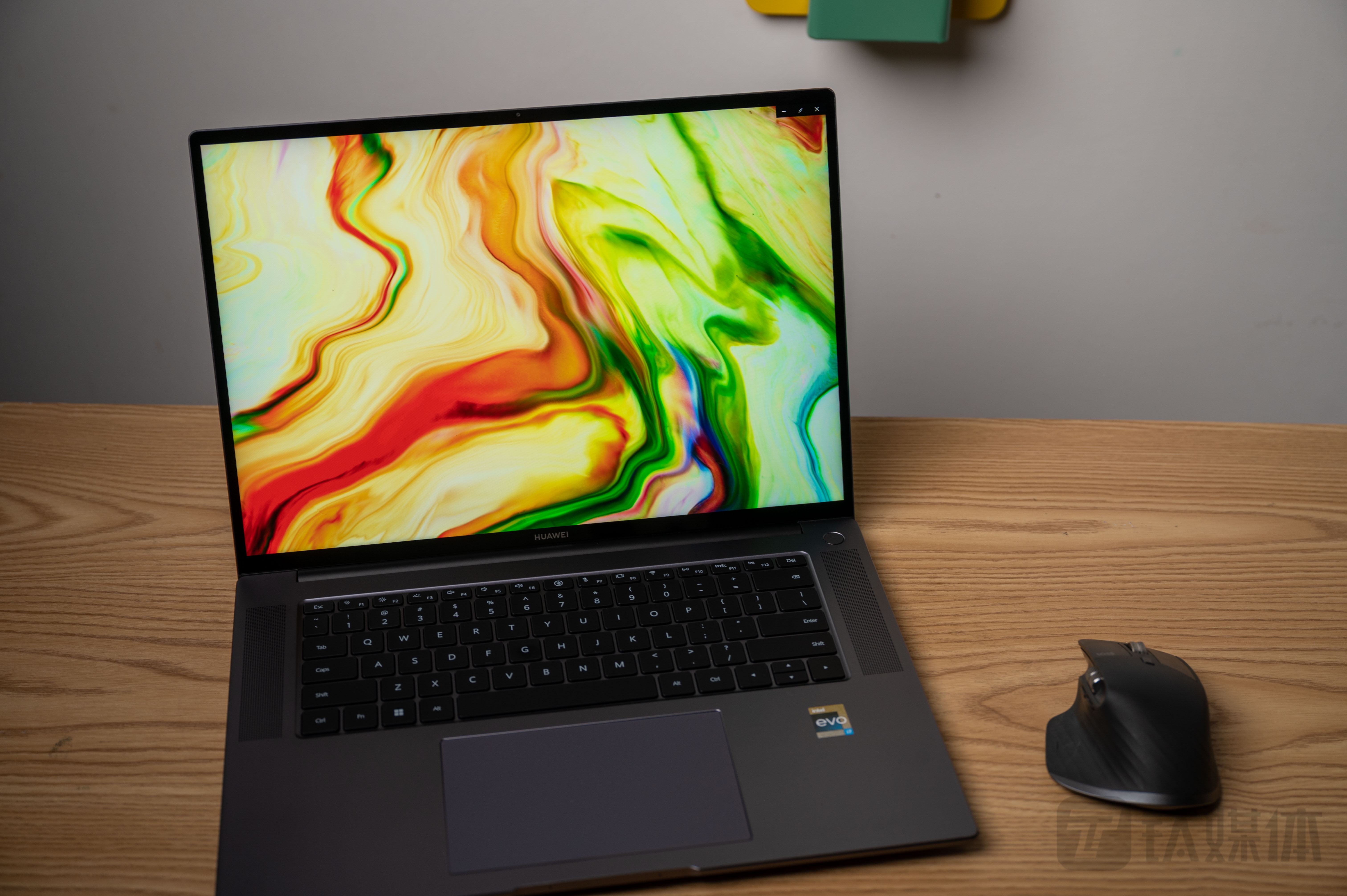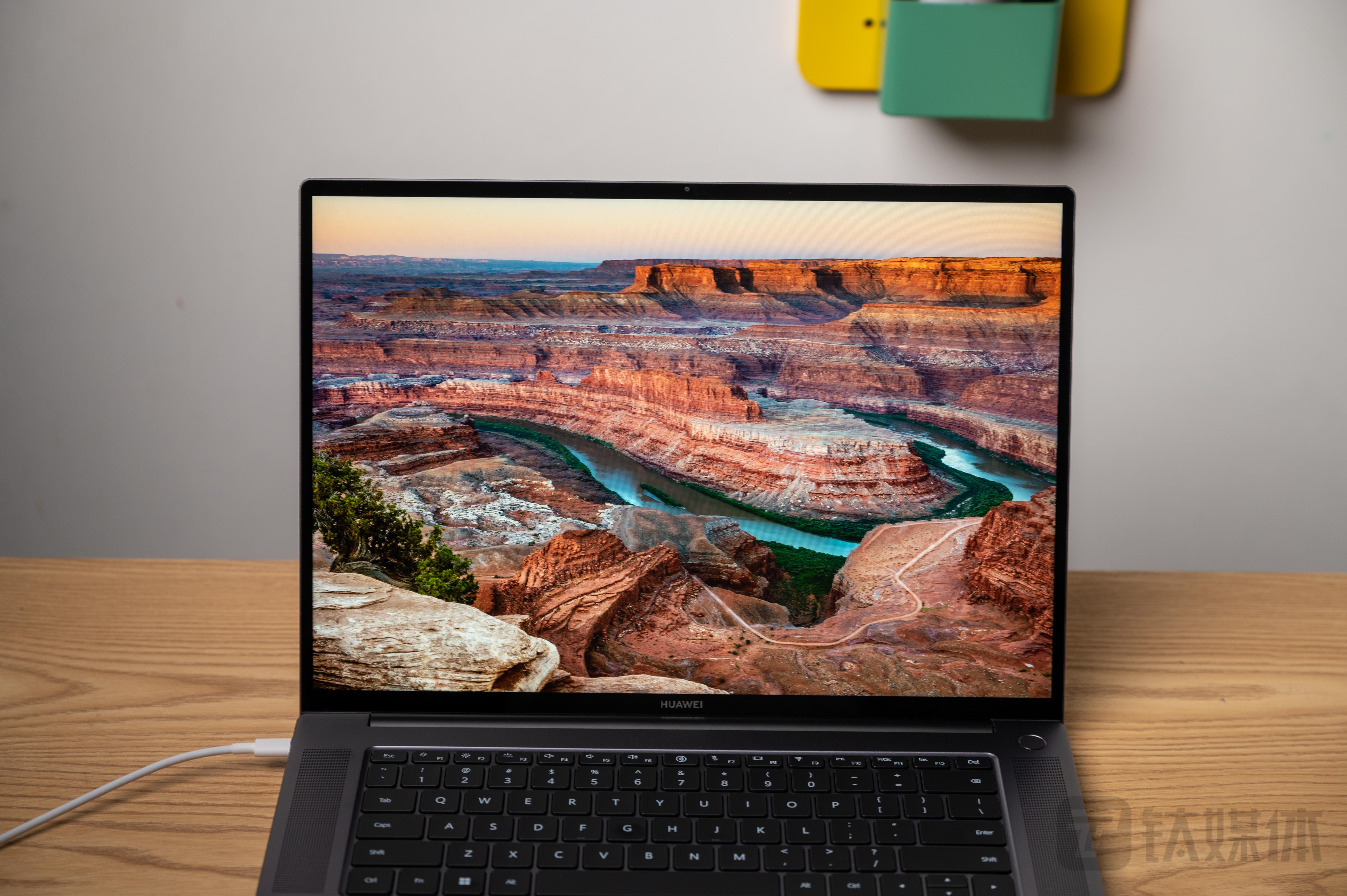 打开笔记本上盖之后,呈现在眼前的就是16英寸的屏幕主体,为了让机身能够更加紧凑,华为将屏幕四周都进行了收窄,让屏占比提升至90%,同时也采用了全贴合的处理,让屏幕更加平整,也更有一体化的视觉效果。