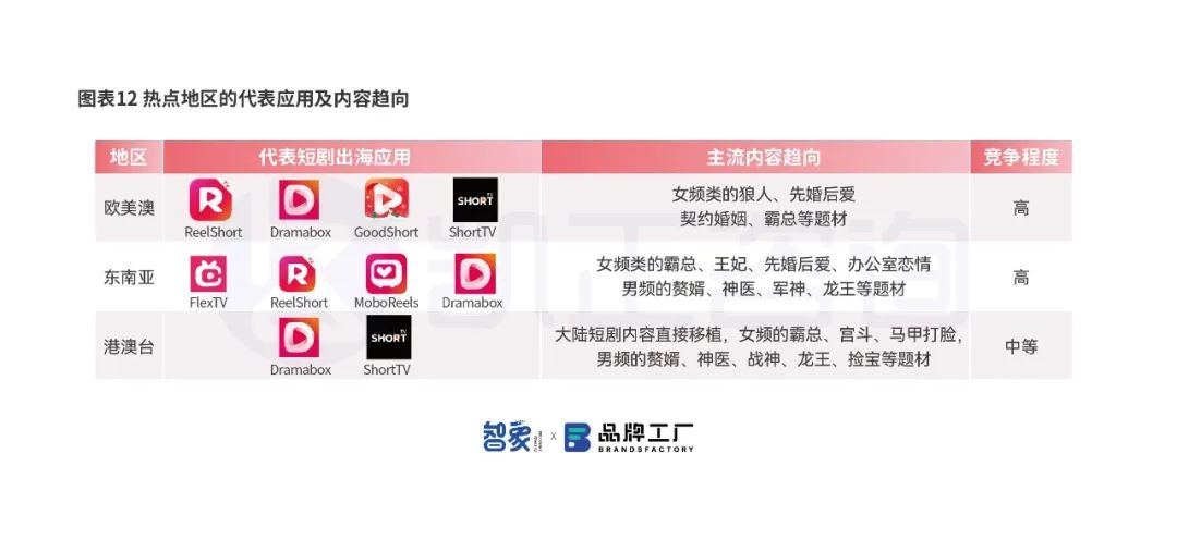 从地区来看,欧美澳地区仍然是付费意愿最高,最可能跑出成功的商业模型的区域,目前出海短剧应用都在争夺欧美市场,但当地对短剧的内容倾向仍然是高本土化内容,这也对出海应用的IP选取、拍摄制作的质量和成本提出了较高的要求与压力。东南亚市场的规模也不低,拉美与中东潜力也在提升。