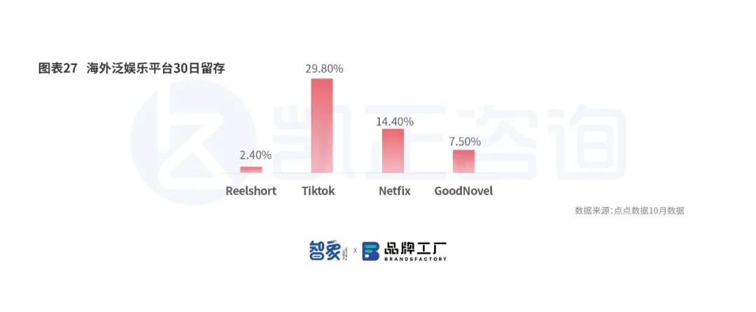 目前来看,即使是头部的几家短剧平台,也没有形成头部平台效应,收入主要靠推出新剧之后的投放激增创造收入,整体留存并不高。30天内留存较低,仍然以ROI打法为主,不能形成较强的品牌效应。