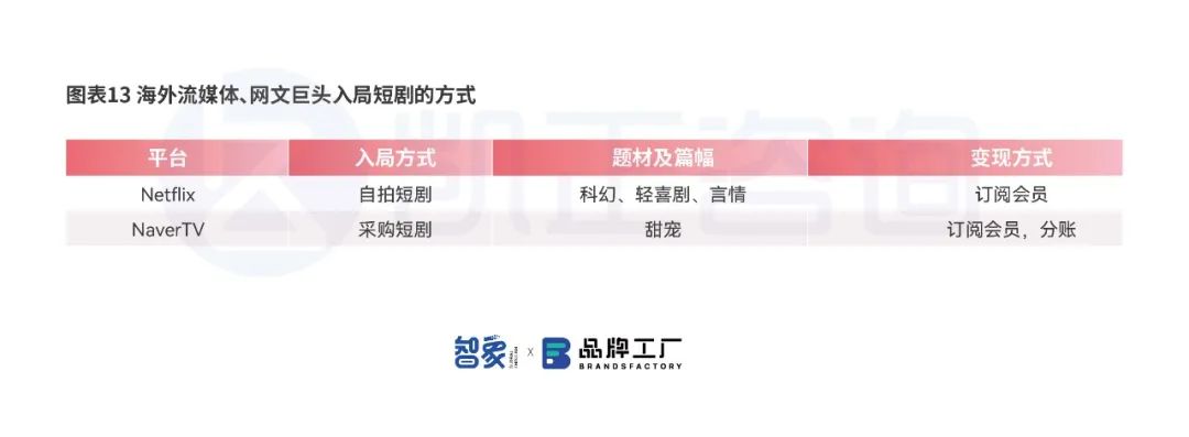 与此同时,海外的巨头对于短剧市场的竞争影响也不可忽视,欧美地区发达的流媒体平台有着出色的IP原创能力与影视制作能力,可以通过规模经济的方式进行短剧拍摄,开发垂直短剧App进行入局。此外海外在漫画和网文应用领域也有拥有丰富内容积累和精细化用户洞察及运营能力的应用,如在网文漫画收入榜中排名前列的韩国发行商漫画应用发行商Kakao和NAVER等,收入占据了整体海外网文领域的60%,巨额的IP积累将让他们在短剧市场中具备天然优势。韩剧对于短剧的探索也始于2018年,但是是横屏而非竖屏剧。与大厂的平台合作、战略投资、并购等方式或许是未来的海外短剧市场即将出现的一类趋势。