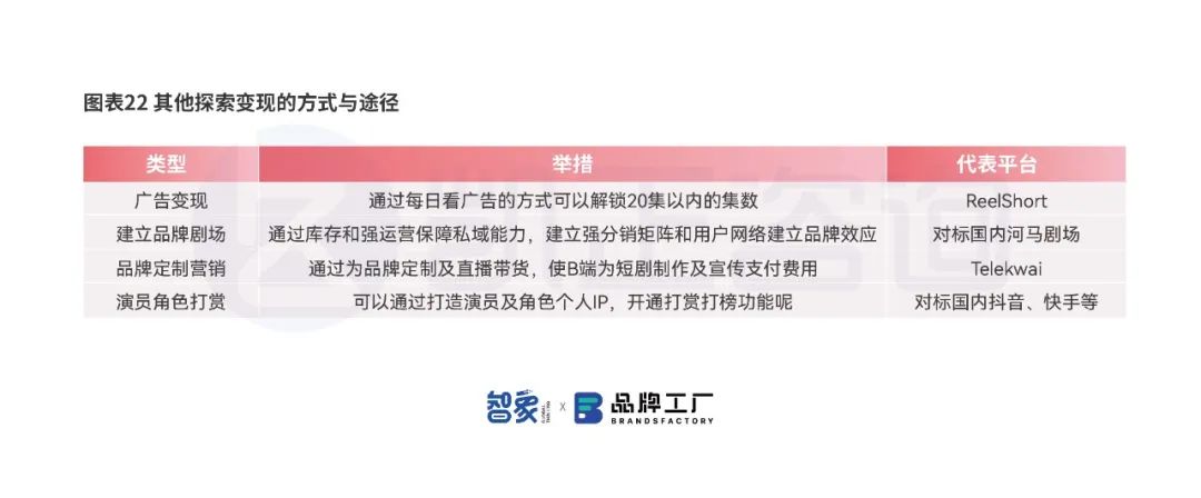 在内容端在海外形成流程化的拍摄能力,将短剧拍摄对标国内形成MCN化,通过规模经济降低拍摄成本,规模化制造本土化内容爆款。有自己的演员培养体系,同时头部平台探索出平台调性进行精品化内容制作,从而探索出产品护城河。而腰部产品则仍然以内容采购及国内内容进行海外本土化为主。国内的短剧版权授权也仍然会是个热门生意。