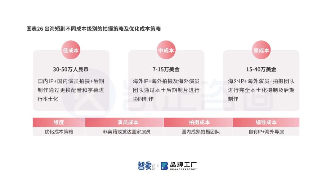 目前来看,在海外付费率及接受度效果最好的仍是本土剧本、本土拍摄团队制作的欧美风格的剧,同时这种类型的剧在新兴市场的接受程度也较高,但这类型的拍摄流程长,前期投入成本高,回报方式不确定,因此头部应用目前选择的策略是控制本土化成本产出本土化内容,快速扩充库存。此外用户对当地的流行元素、文化的需求也使得未来的短剧内容会一路向更加本土化的方发展,海外的拍摄成本是国内的3-5倍,随着海外剧组增加,平均成本也能难免上升。
