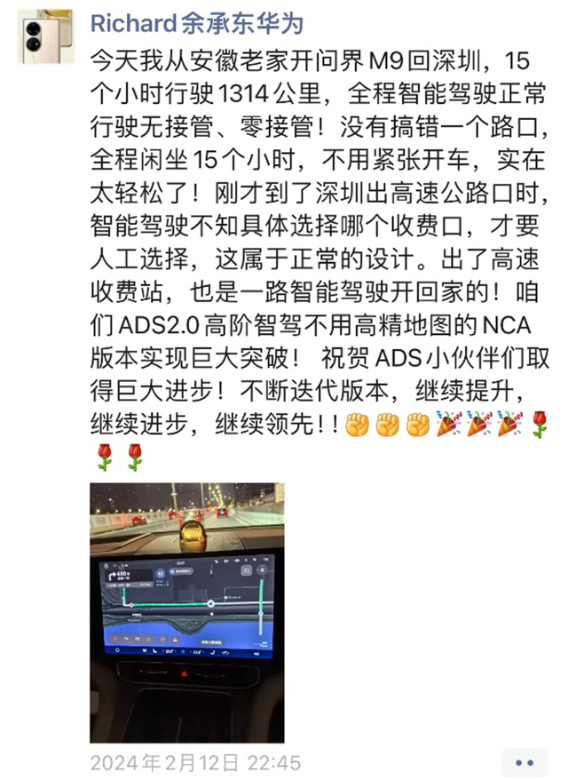 就在春节期间,余承东亲身实测问界M9,又一次将聚光灯吸引到了智能驾驶身上。