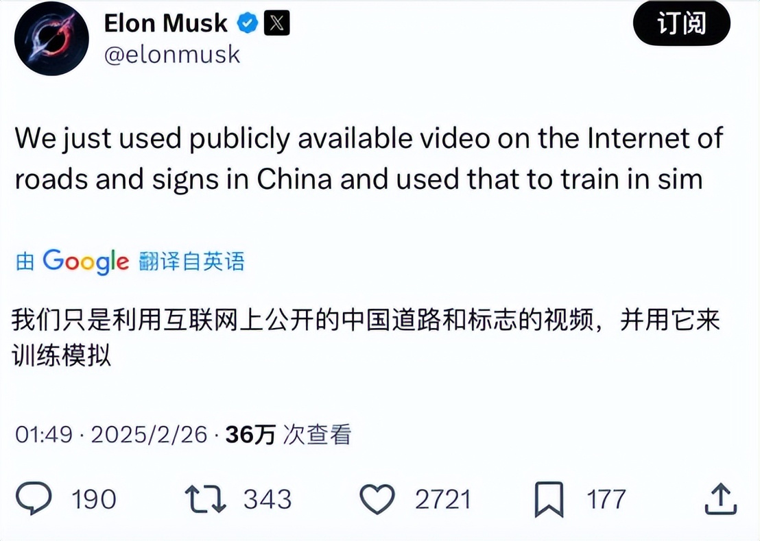 最终,特斯拉采取了折中方案,即通过“视频模拟训练”,实现了对中国道路标志和交通规则的快速适配。马斯克本人亲自回应,“这种方法既符合政策要求,又能高效解决中国复杂的交通场景问题”。