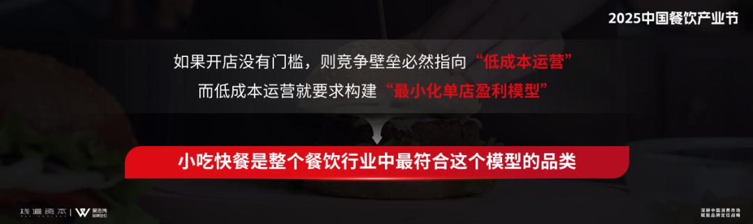 综上所述,小吃快餐突围之路主要有两条:要么抱大树,加盟一些规模成熟的头部品牌,在大的体系中谋求利润空间;要么做差异化,像夫妻老婆店一样,注入匠心,寻求产品差异化,在头部不擅长的领域施展拳脚。 (本文为栈道资本&吴志伟品牌定位咨询创始人吴志伟在“2025中国餐饮产业节”上的演讲实录,红餐网整编发布。)