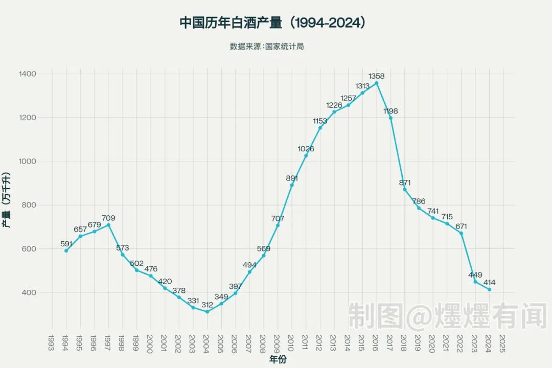 按照白酒上半年产量通常接近全年五成的比例计算,今年全年的产量很可能难以超过400万千升。而上一次全年白酒产量低于400万千升,几乎得追溯到20年前。