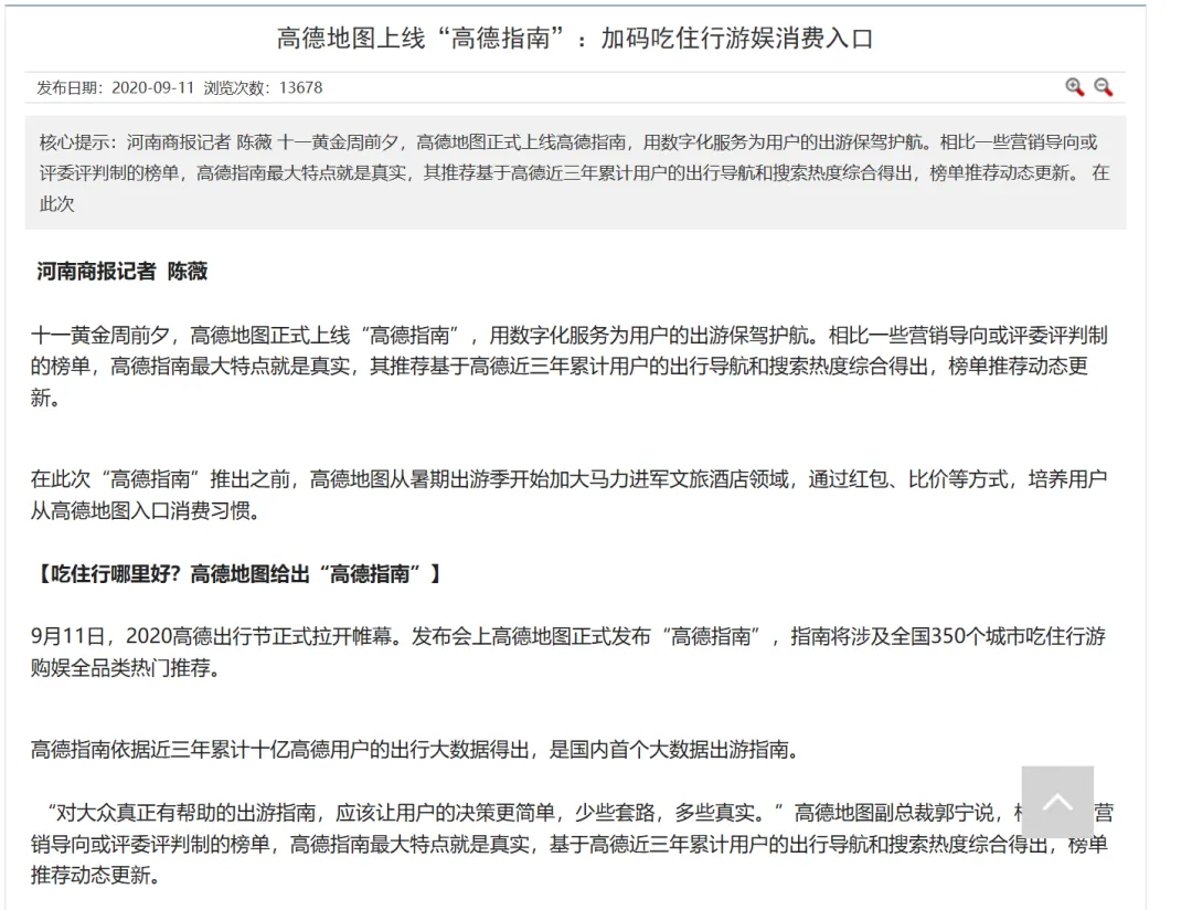 时间回到2020年9月11日,还担任高德地图副总裁的郭宁在“高德指南”发布会谈到,“对大众真正有帮助的出游指南,应该让用户的决策更简单,少些套路,多些真实”“相比一些营销导向或评委评判制的榜单,高德指南最大特点就是真实”。