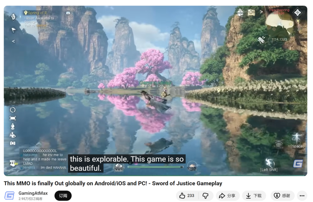 在油管上拥有39万粉的主播Minsleif就对逆水寒手游成呈现的武侠战斗大加赞赏,表示其战斗风格围绕中国的传统武术流派所构建,充分展示了其武侠的精髓,其中的每个门派都各具特色,风格鲜明。