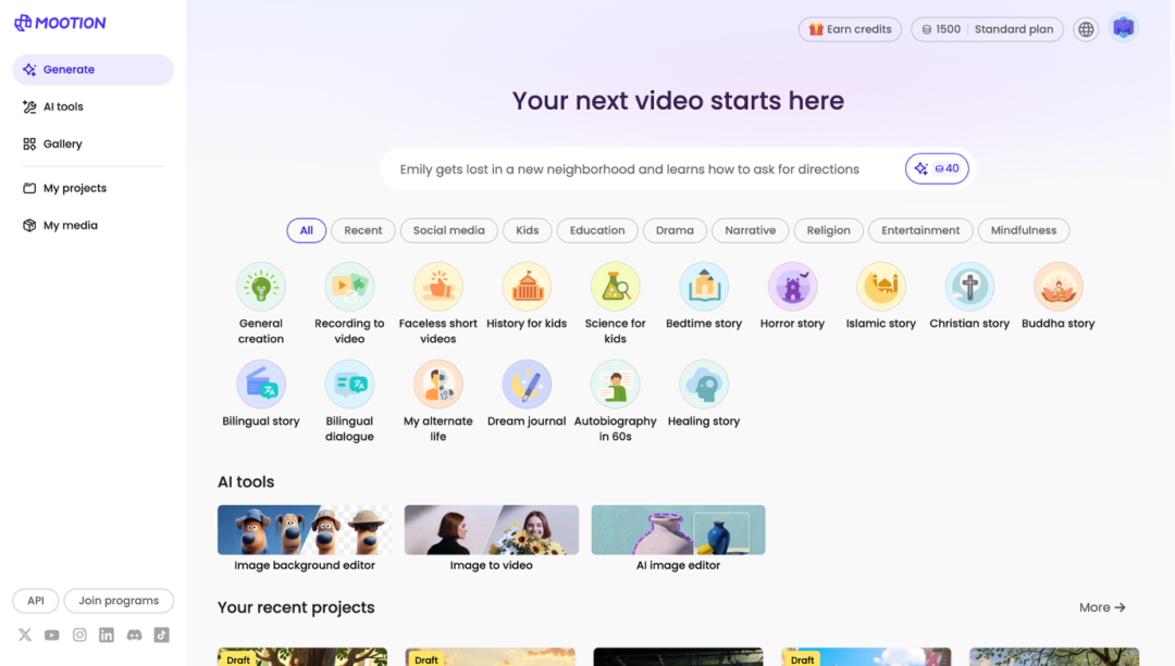 第二,当用户想表达一个完整想法时,他付出的只是自己的Idea。Mootion 帮他省掉了写脚本、写 image/video prompt、剪辑、合成、加配音等一系列复杂操作。对他来说,这就像从“做问答题”变成了“做选择题”。
