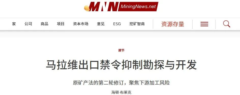 10月下旬,非洲小国马拉维的总统彼得·穆塔里卡发布行政命令,禁止本国未经加工的原矿出口,且政策立即生效。