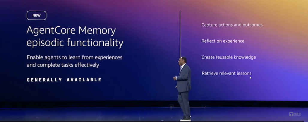 本次 AgentCore Memory 中推出的 episodic 记忆新功能,让 AI Agent 能够记住并从过去的经历中学习。Agent 能够真正理解用户行为,通过识别相似场景中的模式自动调整,并主动提供有效的解决方案。它能将特定体验或交互作为独立情景存储和召回,就像人类记住特定事件一样。Agent 的经历越丰富,就变得越智能。