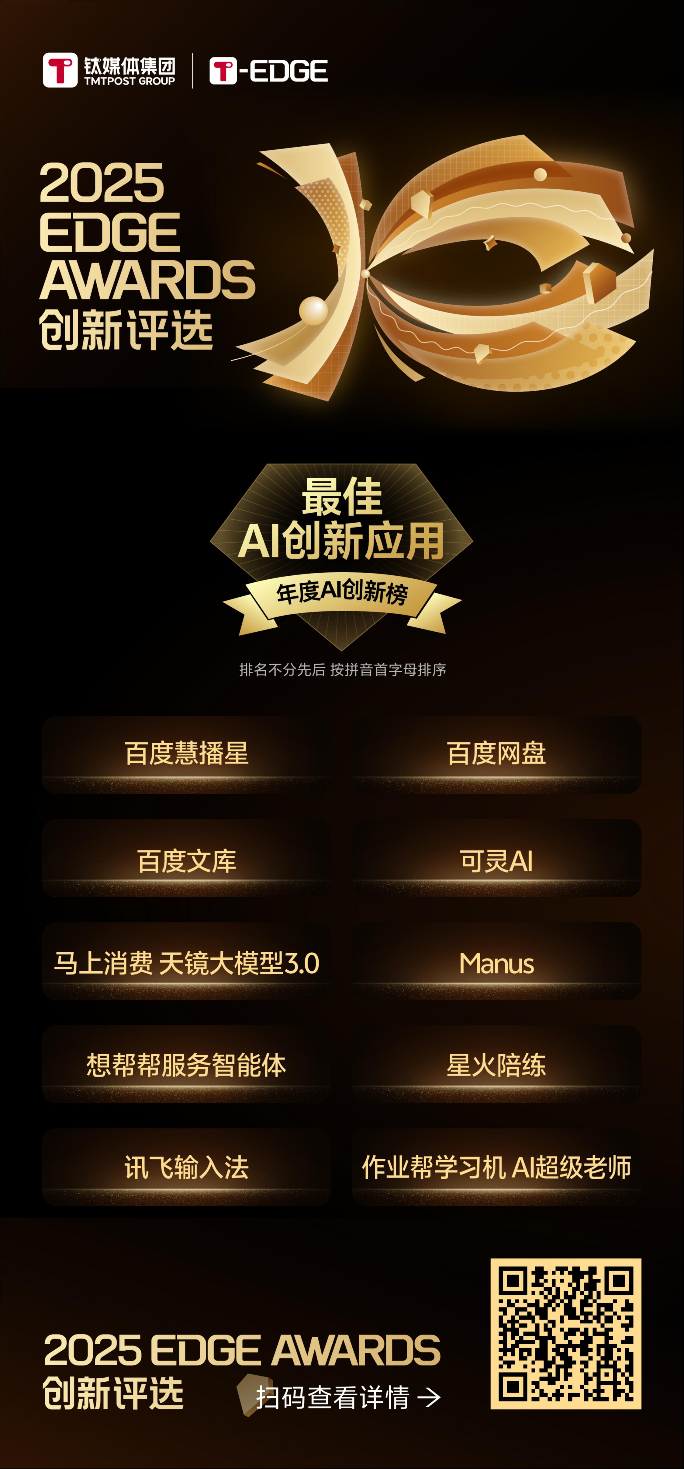 作为全球创新平台的重要价值坐标,EDGE AWARDS始终以全球性的前沿洞察为指引,持续发现和呈现跨地域的创新力量,聚焦前沿科技与长期趋势,是兼具专业度、前瞻性与洞察力的国际创新榜单。多年来,无数推动人工智能技术落地与应用创新的先锋在这里留下了足迹。今年,又一批先行者、创新者、赋能者和探索者,用他们的努力与创意,为行业发展写下了新的篇章。
