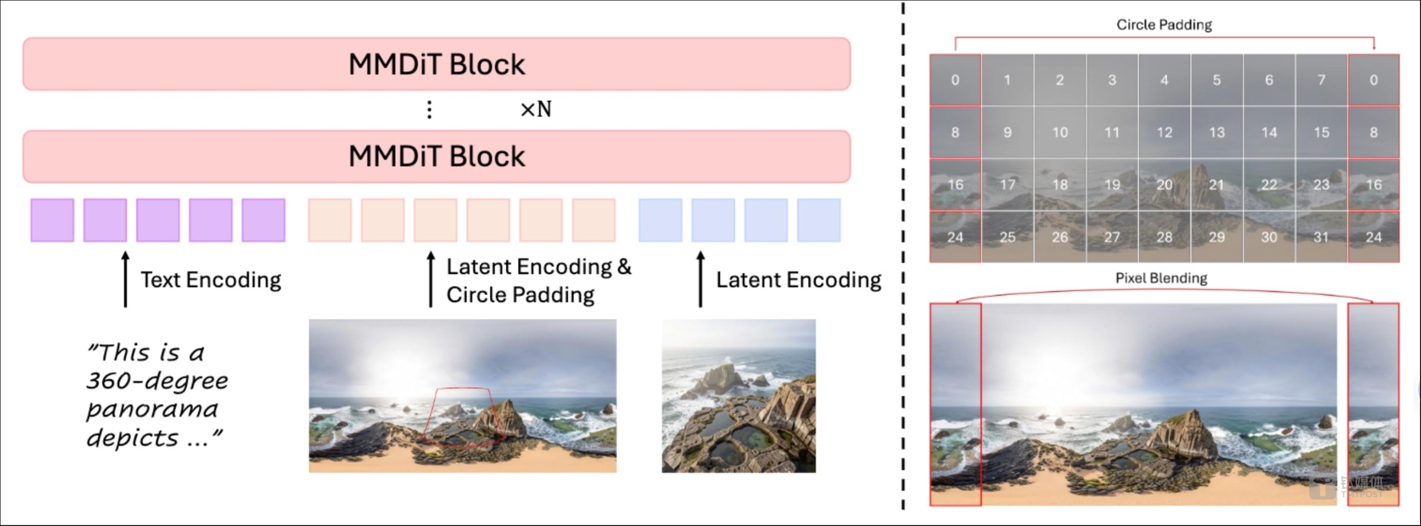 据腾讯官方文档,作为3D世界的“第一块拼图”,HY-Pano 2.0解决了传统全景生成依赖相机参数、场景结构破碎的行业痛点。通过Multi-Modal Diffusion Transformer(MMDiT)实现视角到全景的隐式转换,无需任何相机元数据,就能从单张图片或一段文本中生成结构连贯、细节丰富的360°全景场景。